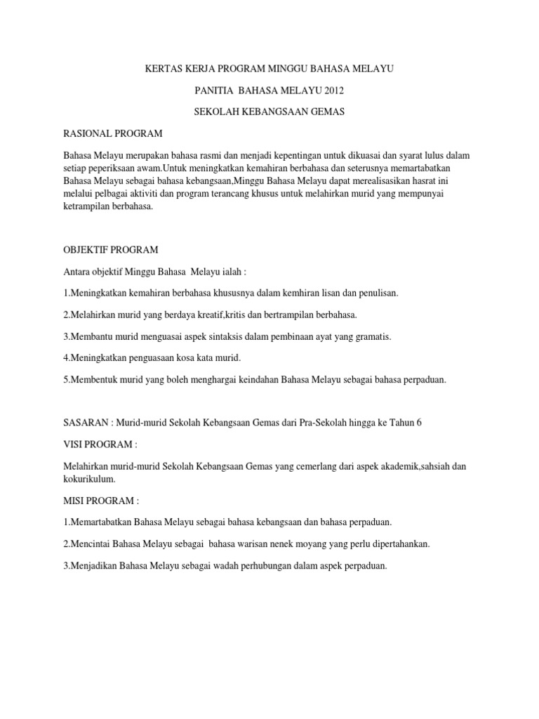 Doc Kertas Kerja Untuk Program Minggu Bahasa Melayu Za Lia Academia Edu